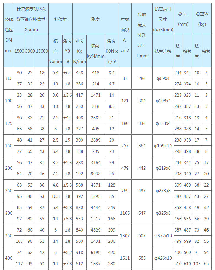 通用型波紋補償器技術(shù)參數(shù):公稱壓力1.0MPa